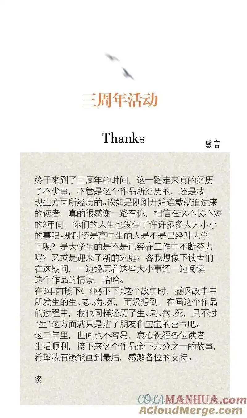 购买 飞鸥不下 公告 第84.5话预览&3周年活动
