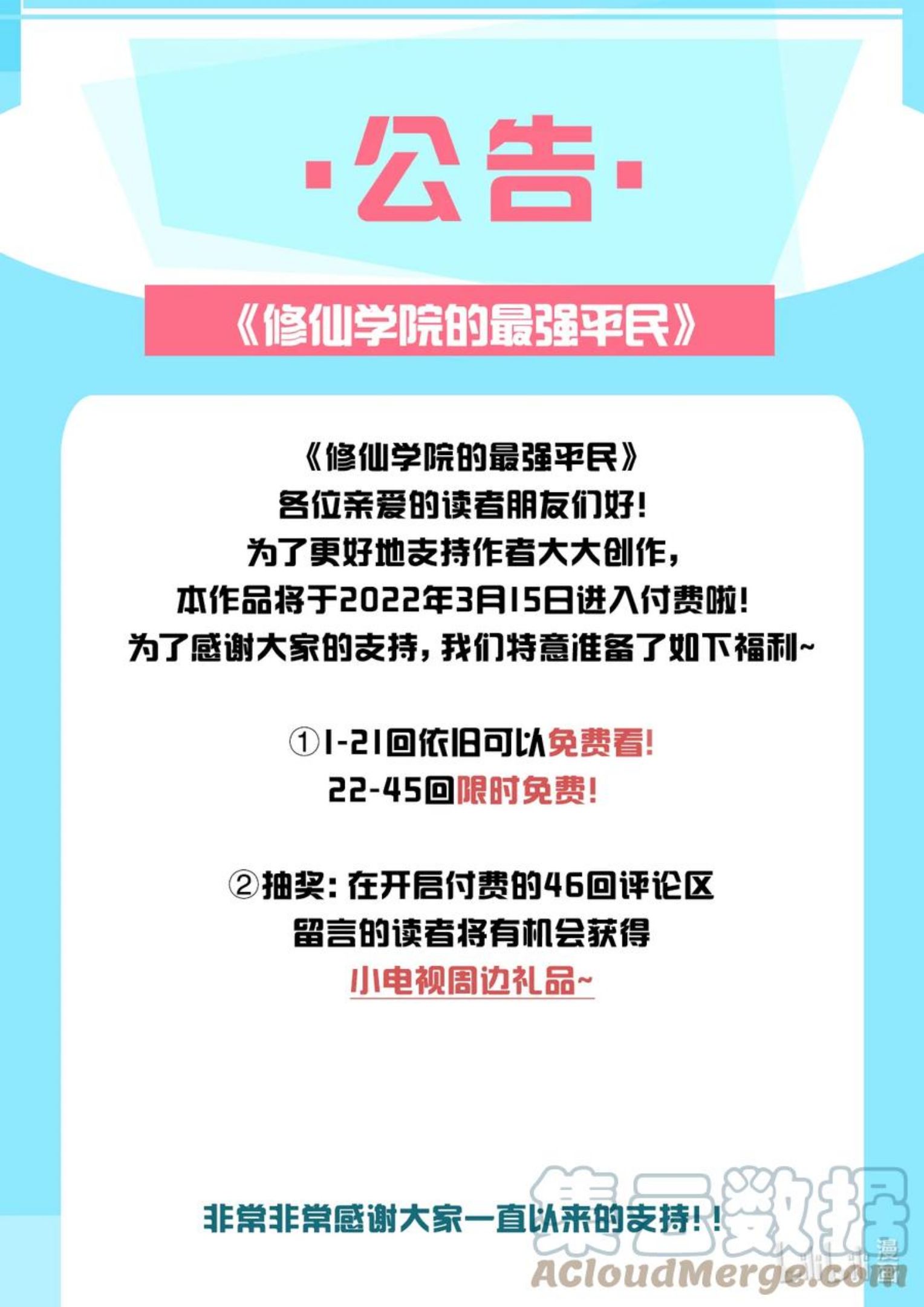 购买 修仙学院的最强平民 公告 付费公告