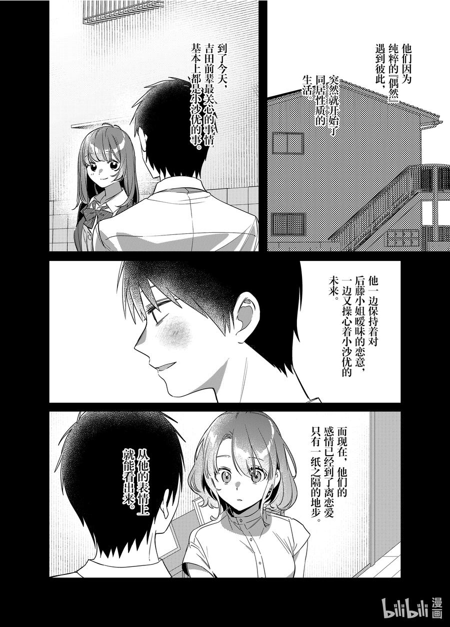 (别名:剃须。然后捡到女高中生。 )吉田是一名普通小白领。在某天酒醉回家的路上,他遇到了自称是无家可归的高中女生沙优——“让我住一晚吧,我会给你……”就这样莫名其妙地,吉田和离家出走的JK开始了同居生活!看似毫不协调的二人交织出了一曲日常恋爱轻喜剧!