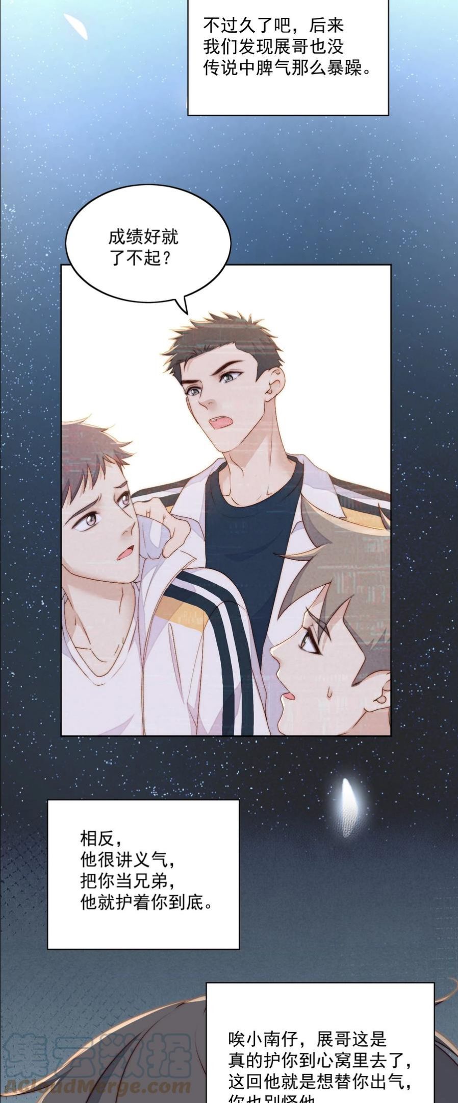 小可怜学霸被校园欺凌于是从重点高中转到普通学校。班主任:展铭,你考的这是什么分?展铭:我叫我同桌教我。前同学:顾奇南,你别以为转学了我们就找不到你了。顾奇南:我叫我同桌打你。