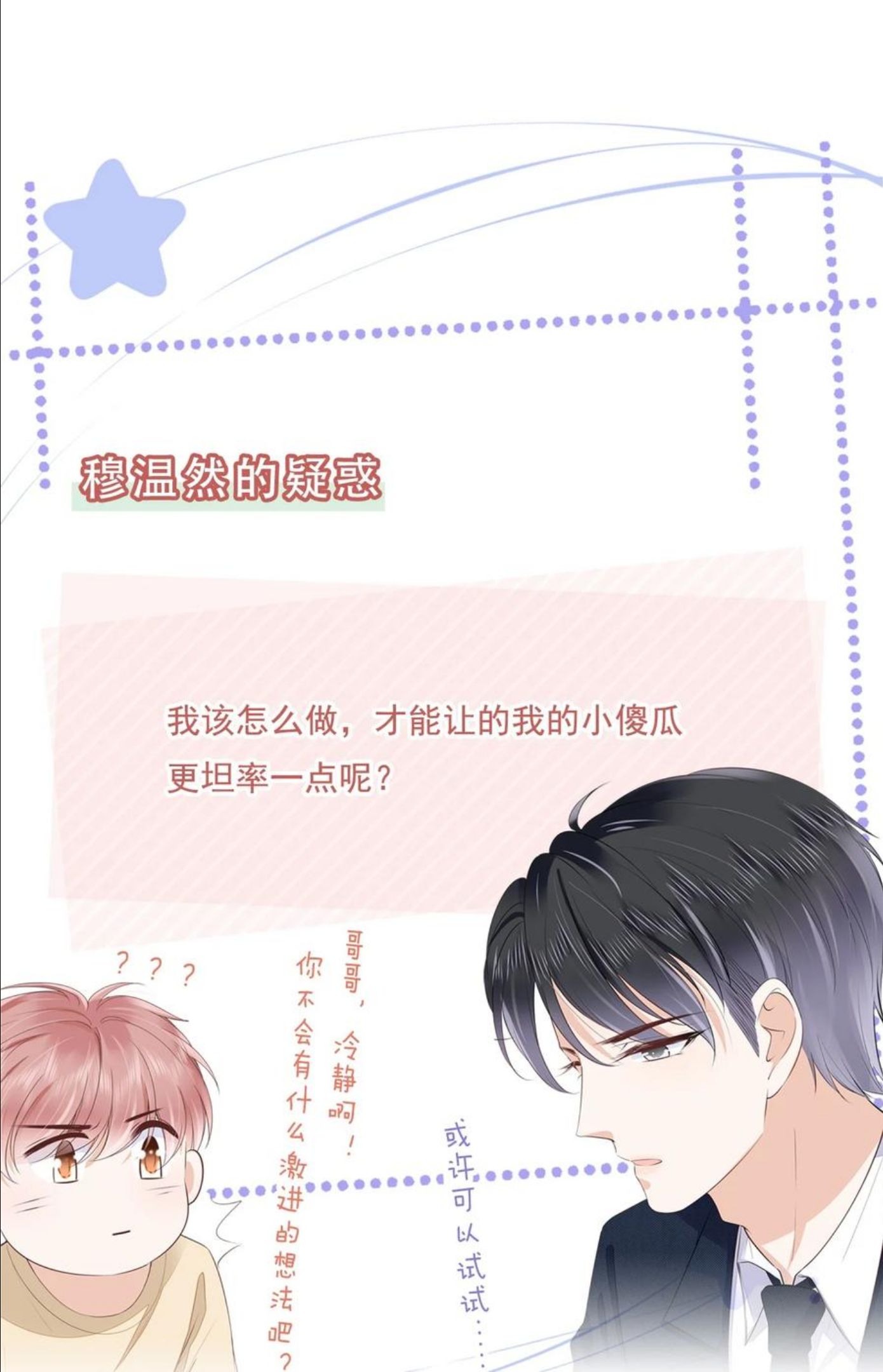 自打上了初中,路迦就很少管穆温然叫哥哥。可他一撒谎一紧张,仍然爱用“哥哥”称呼穆温然。以前不想写作业,他就装病说:“我有点头疼啊,哥哥。”“这章讲的内容我都会,真的,哥哥。”现在他二十三岁,对着穆温然还是会哭。掉了眼泪,他说:“对不起啊,我不喜欢你,哥哥。”他又撒谎。穆温然却笑,为他擦眼泪,轻声说:“没关系,我喜欢你。”