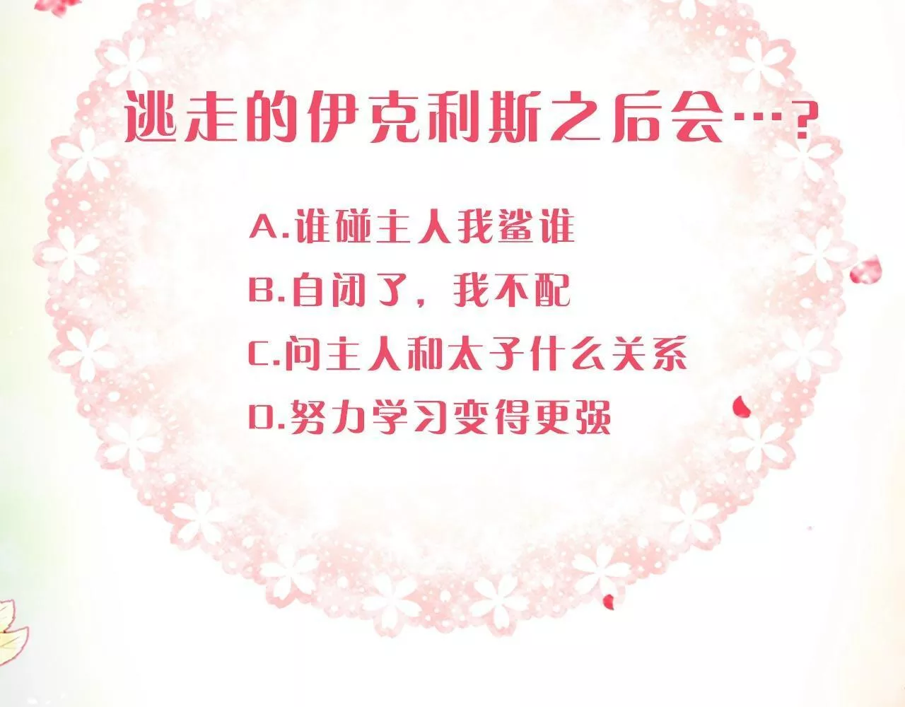 一天,过着平凡生活的徐宥利,在回家途中遭遇交通事故,意外穿越到热门小说《月亮之歌》中,附身了因被反派灭门而早早领便当的配角,名门家族埃文中的双胞胎姐姐Selena,为了阻止埃文家族的灭亡,为了守护家人而努力,代替半夜逃走的弟弟塞莱斯蒂恩加入了骑士队,她能否不被反派皇太子伊格尼斯看中,然后顺利地生存下来呢?